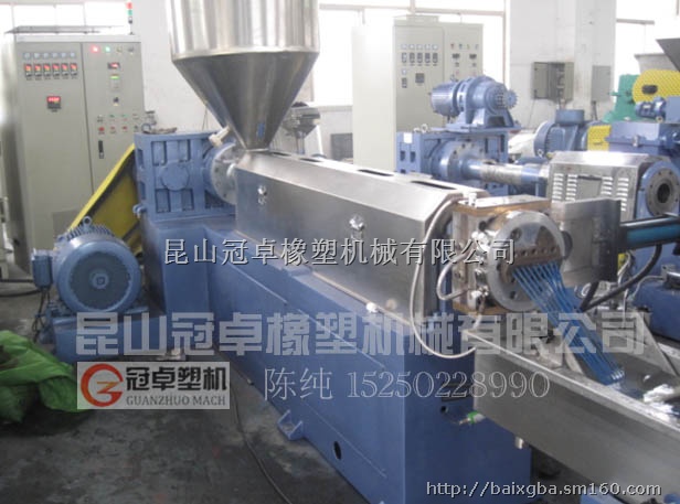 昆山冠卓橡塑机械有限公司专业设计制造:单螺杆造粒机,电缆料造粒机,水下切粒机系统,低烟无卤电缆料造粒机,PVC电缆料造粒机,高填充母料造粒机,色母料造粒机,橡胶母料造粒机,双螺杆挤出造粒机,改性塑料造粒机,锥双强制喂料机,碳酸钙母粒造粒机,工程塑料造粒机,编织袋母粒造粒机,发泡剂母粒造粒机等橡塑机械。公司成立至今.我们一直在不断提高我们的技术服务和配件供应设施.无论在项目策划阶段还是设备出售后.我们都能提供工艺和设备的技术服务和配件服务.欢迎来电与我联系:陈纯15250228990 电话:0512-55000570,我将对你所需要的机组和生产工艺进行指导. 昆山冠卓单螺杆造粒机系列产品。