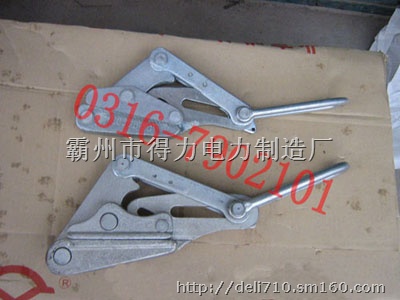 主要用于架空电力线路的调整弧垂、拉紧导线。关键词43钢线地线卡线器主要用于拉线杆塔的拉线调整和地线紧线。欢迎新老客户来电来厂采购精铸钢制铁导线卡线器、铁导线卡线器、绝缘卡线器、单桃卡线器等电力工具拉线紧线工具!咨询热线:电话0316-7902525手机:13931623535网址:www.deligongju.com