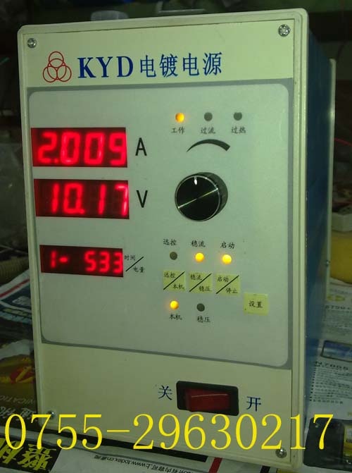 简介:KYD电镀电源是为金刚石电镀研发的智能精密型电镀电源,客户可以跟据要求预先设定好3段电流和每段电流的工作时间,每段的工作时间和电流可以独立设置;每段工作过程完成有报警提示,整个过程完成自动报警提示并切断电流输出。该产品应用范围极其广泛,金刚石电镀加工,磨头、磨棒电镀加工,五金电镀;电解;氧化;抛光;PCB板电镀;真空镀膜;半导体老化;蓄电池充电等,体现的最大优点是精度高,应用独特数字恒流技术,恒流控制精度高达1‰,即1mA量级精度,同行业超前,能确保电镀时的电流密度恒定,满足越来越高的电镀工艺要求。