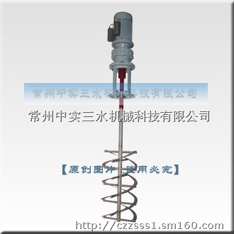 在搅拌轴的外围设置均匀分布的2条螺旋上升的不锈钢螺带,搅拌轴与螺带之间通过不锈钢圆钢制成的均匀分布的横档连接起来,当搅拌轴被减速电机驱动旋转时,螺带将物料往上推,横档对物料形成有效分割,达到搅拌分散的工艺效果。