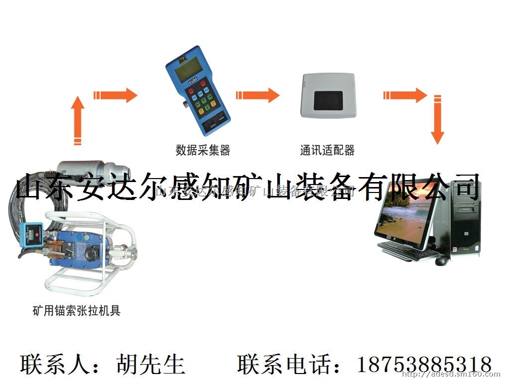 将检测仪固定安装在矿用锚索张拉机具上,在煤矿巷道进行锚索张拉检测时,光控或手动触发显示,检测仪进入正常工作状态后,将动态检测、显示张拉机具的压力和张拉力,并自动记录一次张拉过程中的数据以及数据对应的时间参数,数据通过射频无线数据采集器进行采集,专用数据分析软件对采集数据进行分析。