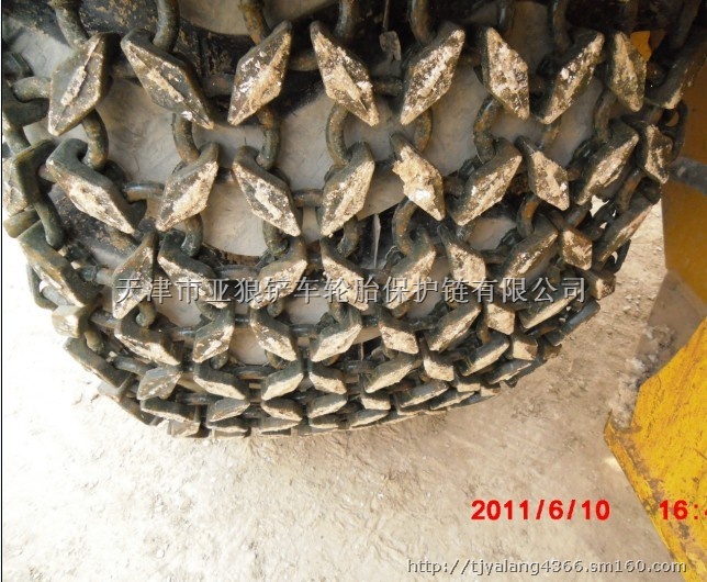 我公司是一家专业生产国内外各种型号产铲车链条的厂家。例如23.5-25铲车链条是安装在ZL50及龙工855、853等装载机上的,铲车链条链条是用合金钢铸造而成,种类分菱形节、方节两种。加强型保护链(菱形链节):这种保护链适用于矿山、采石场等环境,使用寿命可达一年左右,亚狼强耐磨型(菱形链节)保护链,适用于岩石路面十分恶略的情况下,其耐磨度极佳,(为我公司独创产品)寿命可达一年半左右。加密型(方节)链条适用在(钢厂)及一些细小岩石路面,为防止轮胎被割伤刺破特研制而成的一种间隙(2.5mm)的链条。以上产品寿命可达2000-4000个小时(根据保护链的类型而变化)给广大用户带来直接的经济效益,受到了广大用户的欢迎。使用天山狼铲车链条省去您在施工中流失的大量资金,是您施工必备品。