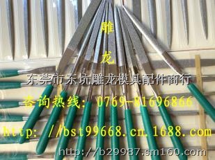 一品钻石锉刀--采用电沉积工艺,将天然金刚石电镀在基体上,使用它具有效率高,成本低,经济效果好等特点.能够用于锉削坚硬的材料:硬质合金,高硬度的钢铁,陶瓷,玻璃等.标准的形状有:平扁,圆,半圆,四方,三角,尖平,刀形,单面三角,两圆,椭圆。