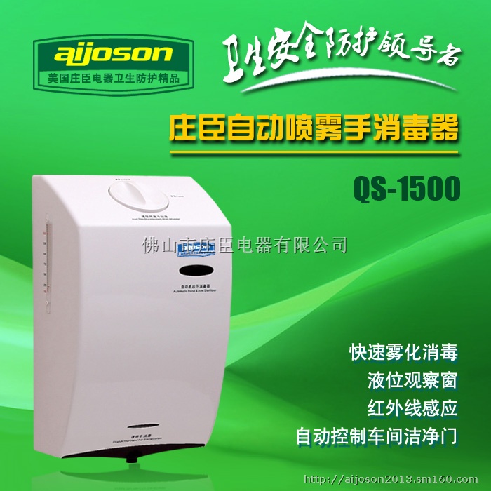 特点1:庄臣QS-1500自动感应手消毒器外观简洁大方,采用先进的集成数码电路控制器,红外线感应全自动喷雾,完全避免了消毒前后的二次污染; 特点2:庄臣QS-1500手消毒器可以根据需要将喷雾量无级调节,可以设置为0.5-10ml任意调节喷雾大小,喷雾效果极佳,使卫生消毒工作更胜一筹! 特点3:庄臣QS-1500酒精消毒器是全球第一款可选配洁净门控制系统的消毒机器,让您的卫生消毒工作更加轻松省心。人性化细节设计,处处满足您的各种使用习惯; 特点4:庄臣QS-1500自动杀菌净手器拥有最佳设计模块,可以填充1500ml大装液容量。精巧配置装液提示视窗,具有满液、缺液报警功能,配有装液过滤网,装液内瓶可轻松取出进行清洗或消毒,大大提高工作效率与卫生安全; 特点5:庄臣QS-1500手指消毒器自动感应,无需手按,让您的手心、手背、手臂均可快速方便实现消毒,手伸即喷,手离即停。是现今最卓越的消毒喷雾机,是最畅销的酒精喷雾消毒机款式。完全符合GMP、HACCP、QS卫生安全要求。 | ||