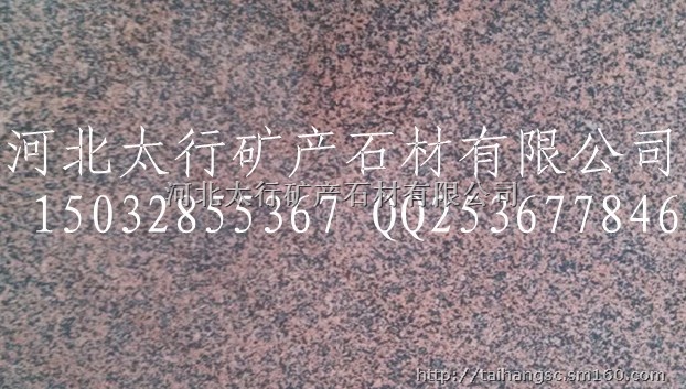 优质贵妃红供应商家河北太行矿产石材有限公司,专业矿山销售贵妃红石材,贵妃红石材材质花岗岩,天然的高贵的红色,板材辨识度较高,广泛的用于外墙干挂石材以及地面、台阶、踏步、圆柱异型加工等处,石材质地坚硬,可以在室外长期使用。 可做成多种表面效果-抛光面、亚光面、拉丝面、火烧面、荔枝面、水刀处理等等。