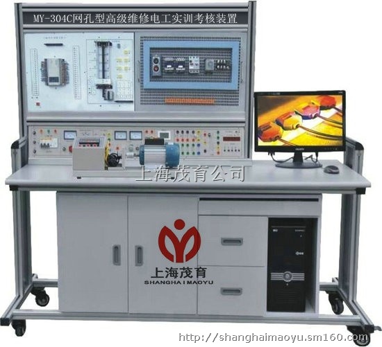 MY-304C网孔型高级维修电工实训考核装置主要由实训桌、网孔板、实训元器件(也可自购)组成。学生根据实训线路进行元器件的合理布局,安装、接线全部由学生自行完成,接近工业现场,能完成电工基础电路,电机控制线路,照明配电的模拟操作,PLC可编程综合应用线路,电子技术应用电路的综合实训,通过一系列项目实训培养学生动手能力和实操技能。实训项目可自行确定,根据所选的项目选择相应的元器件。MY-304C网孔型高级维修电工实训考核装置也可作为电工考工的考核设备。