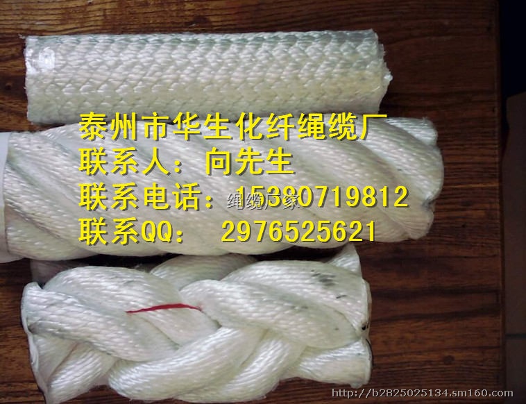泰州市华生化纤绳缆厂是专业生产三股绳、八股绳、十二股绳 多层多股编织绳、尼龙单丝六股复合绳、缆绳、系泊缆绳尾、军用伪装网、各种帐篷等产品的生产厂家。设备先进,技术力量雄厚,质量可靠,款式齐全,交货期快。可根据客户要求来样定做。欢迎新老客户来电来函洽谈