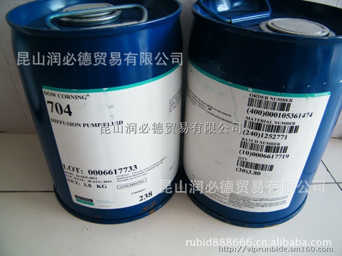 昆山润必德贸易有限公司,电话:0512-57172228,0512-57797412DC704是高真空技术中使用的扩散泵油。DC704扩散泵油性能好,它热氧化稳定性高,粘性系数小,沸点范围窄,蒸气压曲线陡(温度变化一点,蒸气压变化很大),常温蒸气压低,凝固点低,加之化学惰性,无毒,无味,无腐蚀,因而它可在250摄氏度下长时间使用,在真空下允许在更高温度下使用。DC-704扩散泵油是为高真空和在生产作业中用于生产工作中快速抽空大容积气体和水汽,用于制造超高和超洁净真空。国内95%以上的进口扩散泵硅油。 极具价格优势的原装进口欧瑞康莱宝真空泵及扩散泵专用油GS77、GS32、N62、N62H;日本爱发科R-7/R-4;日本松村MR100、MR200、MR250;德国普旭VM100;爱德华19.20.70、V-LUBEF/H/J;道康宁HVG真空密封脂、DC704、705、702扩散泵油、摩力克1102、EM-30L、EM-50L;日本LUBE电动注塑机专用润滑脂;TRIBOL(赛宝)/ROCOL(罗哥)特种润滑剂等,库存充足,交货准时,价格优惠!我们的目标:力争成为精密、切削、清洗及真空用耗材行业最优秀、最具竞争力的合作伙伴;为客户提供性价比最高的清洗润滑防锈产品和全方位的技术支持是我们不懈的追求。“诚信品质 卓越 服务 合作双赢”是我们永远的宗旨。 http://www.rubid.cn电话:0512-57172228,0512-57797412 联系人:路皓