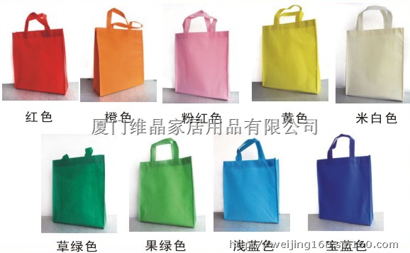 无纺布袋工厂选择厦门维晶家居,特点是材质韧性好,颜色鲜艳,适合广告顾客的需求,无纺布的克重常用的有7080 90 100,其他的克重相对在购物袋里面比较少用。印刷方式有丝印和热转印,有车工和热压方式。