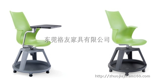 材质:PP工程塑料一体成型椅座及椅垫,PU滑轮,坚固耐用,带可旋转写字板,非常人性化