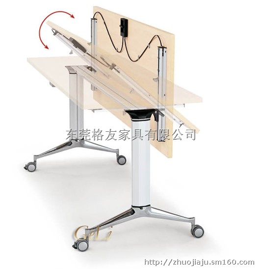 特点:功能强大,台面板可翻落,便于移动,可推叠在一起收藏,节省存放空间;适用于培训室、多功能厅、报告厅、会议室、洽淡厅等或当小办公桌使用