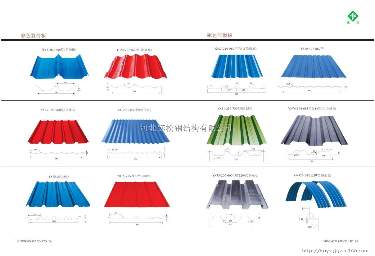 石家庄彩钢板公司【钰松】优质的质量 好的保障 河北【钰松】钢结构有限公司 联系人:颜经理 联系电话:13833136870 0311-88719066 网址:www.hbysgjg.com 彩钢的特点: 隔音性 隔音效果是评估住宅的一个重要指标,彩钢+轻钢体系安装的窗均采用中空玻璃,隔音效果好,隔音达40分贝以上;由轻钢龙骨、保温材料石膏板组成的墙体,其隔音效果可高达60分贝。 健康性 干作业施工,减少废弃物对环境造成的污染,彩钢材料可100%回收,其他配套材料也可大部分回收,符合当前环保意识;所有材料为绿色建材,满足生态环境要求,有利于健康。 舒适性 彩钢墙体采用高效节能体系,具有呼吸功能,可调节室内空气干湿度;屋顶具有通风功能,可以使屋内部上空形成流动的空气间,保证屋顶内部的通风及散热需求。 快捷性 全部干作业施工,不受环境季节影响。一栋300平方米左右的建筑,只需5个工人30个工作日可以完成从地基到装修的全过程。 环保 彩钢材料可100%回收,真正做到绿色无污染。 节能 全部采用高效节能墙体,保温、隔热、隔音效果好,可达到50%的节能标准。 1.重量轻:10-14千克/平方米,相当于砖墙的1/30 2.隔热保温:芯材导热系数: λ