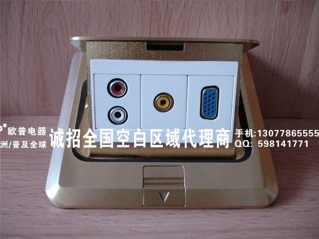 安装于厅、室内任意位置的地板平面上,供接取电源、或电话、电脑、麦克风等线缆传输信号之用。不用时,插座可以完全收进地板,不影响通行及清扫。需要使用插座时,只要用手指拔动滑舌,插座体就会自动弹出,供插头方便地插接。