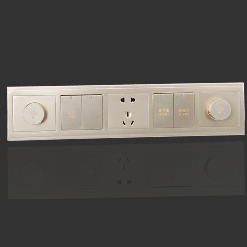 六:产品外观高档,做工精细,选材考究,左右边更有银边相衬,显得更时尚,开关与底座和面板缝隙均匀合理,开关声音悦耳清脆。(优于市场同类产品,缝隙大,做工粗糙,本产品选用优质模具和精细注塑工艺,使产品质量更稳定,缝隙更均匀,外观更时尚,档次更高,更具性价比)