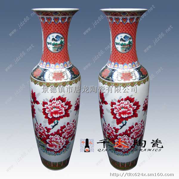陶瓷大花瓶多用于大厅、门厅、客厅等摆设,主要用于开业礼品,大楼建筑落成、工程竣工开业、奠基典礼、酒店宾馆陈设、企事业单位乔迁、周年纪念、学校校庆、搬迁新居等。有特殊需要,在大花瓶身上可烧制LOGO、公司名称、人名、赠言,纪念用语,年月日等。全手工绘制,高白泥手工拉胚,高白釉上底色。陶瓷大花瓶要经过淘泥、摞泥、拉坯、修坯、绘画、上釉、烧窑、成瓷等近七十道工艺才能制做完成。