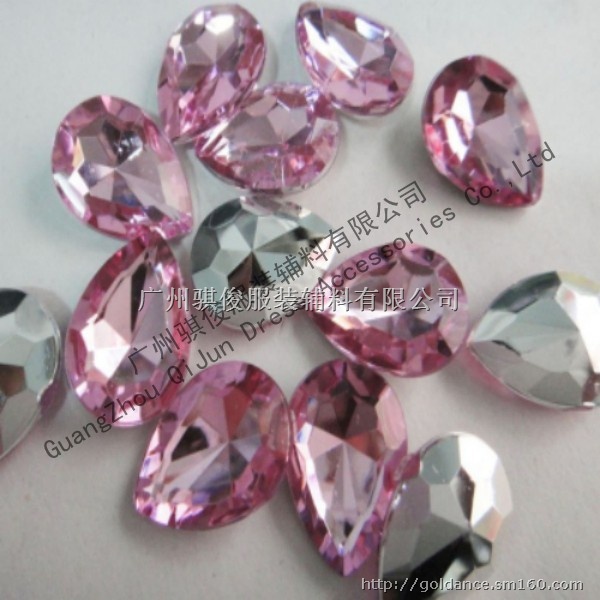 广州骐俊服装辅料有限公司专业生产批发销售亚克力钻,台湾亚克力钻,仿台亚克力钻,国产亚克力钻,尖底亚克力钻,无孔亚克力钻,压克力钻已成为当今流行的饰品配件材料和服装辅料的重要组成。由于压克力钻的透亮,轻盈,不易碎裂,成本低,制作容易的优点。使得压克力钻成为服装行业最常见的钻饰品配件之一。