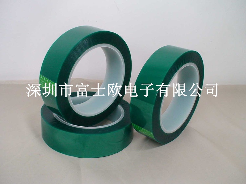 以PET薄膜为基材涂布进口耐高温有机硅胶而成,颜色为绿色,粘性佳,服贴性好,耐高温、耐溶剂、不渗锡、不残胶,具备卓越的电气性能:高绝缘、耐高温、低温、耐酸碱、低电解、良好机械性能、耐磨擦、抗撕裂;特殊粘剂处理,粘着力强,撕去后被遮蔽表面不留残迹。应用于PCB板的电镀和焊接,用于防止电镀液渗入电子零件,防止电镀液飞沫和蒸汽等污染被动原件,以及电路面焊接时遮蔽端子部件;确保把电子零件封装到基板上时的焊接处理工序中耐焊性,耐溶性以及密封性。即使在焊接、研磨、烘干、电镀这样严酷的条件下也能与电路板精密贴合,使用后几乎能够无残胶剥离。
