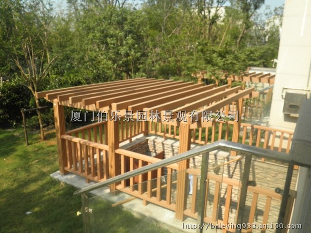 厦门防腐木葡萄架 厂家施工 专业服务 2014首选伯乐景 文明在前进着,但在文明的每一个步伐里,我们却听到了地球沉重的喘息;人类只有一个地球,而人类的开采却在继续,资源在日益的减少,大自然在人类文明的凯歌声中变得伤痕累累...... 在我们生活的这片土地上,绿色正悄悄地远离我们而去;在都市钢筋水泥的丛林里,我们已很难再找到那曾经滋润过我们心灵的绿野、流水、小桥...... 于是,一种全新的造园理念悄然兴起...... 厦门伯乐景园林景观有限公司从事景观、绿化方面的设计、施工、管理养护已近20年。通过景观设计寻求人类与自然之间的关系纽带,并以与自然共生、调和及对话为基础,为社会提高品质的景观设计作品以此为下一代的人们留下神圣而又美丽的环境作为人类永恒的资产,并追求一种能为尊贵的地球及社会作出贡献的景观创造。本着关注环保、崇尚自然的经营理念,以现代预铸工艺,融合东西方造园先进技术,突破传统笨拙的真石造景手法,代之以克隆石造景,既可保护环境,又可以其质轻(约真石的1/40-—1/100重)、防水性佳等特点解决超荷载及漏水等困扰人们已久的问题。 在居家有限的空间里,一处小小的景致,一丝细细的流水,或许能让您暂且忘却都市的喧哗、洗却一日工作的烦恼......