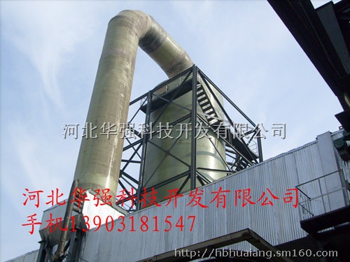 3 、玻璃钢塔体质量可信,性能良好。 根据净化塔各部件的工作环境,分别选用了耐碱性能好和结构强度高的树脂,外表采用防水、防老化性能好的胶衣树脂。为增强塔体强度,塔体外壳采用了若干纵向加强盘,并根据各种型号的体型大小分别采用了圆筒形双筒体分段与分片相结合的综合结构。因净化塔长期工作在酸碱性腐蚀气体的环境中,除随塔体自身压力及溶液压力外,还要随工作时的风压(风机全压在 200_250H 2 O ) , 要求全部玻璃钢制件既要有良好的耐腐蚀性能,又要保持较高的抗拉、抗压强度,因此,我公司在充分考虑和排除了强腐蚀下的强度折减系数及手糊成型工艺的离散性能因素后,针对塔型结构和使用环境特点,按最恶劣的工作环境下,整个玻璃钢部件及保持富裕的储备强度。