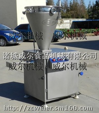 单螺杆真空灌肠机集机械、真空、自动控制等多种技术于一体,具有单罐、连续直灌、等模式,操作简单,分份精确(配高速扭结机更佳),清洗方便。单螺杆充填、可调电机驱动、可编程控制器控制的全自动真空直灌灌肠机,可配高速自动扭结机、打卡机用。传递物料轻柔,灌装的过程中不会产生摩擦发热现象。而且灌装速度可调整,效率高。