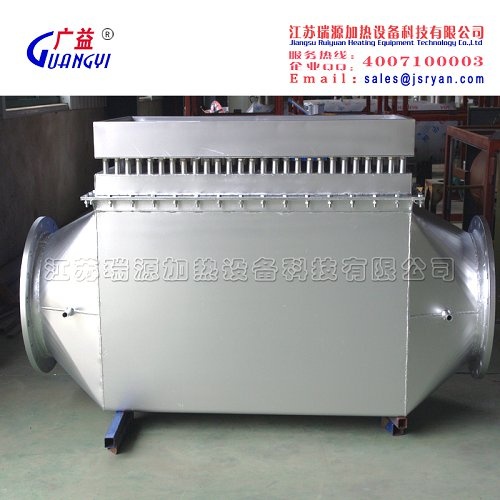 2、电加热器:为法兰式,加热管焊接在法兰上,配有多道导风板。加热管外壳材质为:不锈钢无缝不锈钢管,电热丝为进口高阻值Cr20Ni80绕制,填充物均为高等级氧化镁粉,耐温、耐压使用寿命可达多年,并留有一定数量备用;