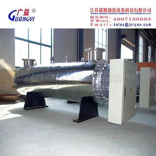 2、电加热器:为法兰式,加热管焊接在法兰上,配有多道导风板。加热管外壳材质为:不锈钢无缝不锈钢管,电热丝为进口高阻值Cr20Ni80绕制,填充物均为高等级氧化镁粉,耐温、耐压使用寿命可达多年,并留有一定数量备用;