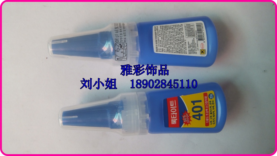 韩国进口401瞬干胶水温馨提示:性能数据是在温度25度,湿度70%的实验室环境下所测得的典型数据,仅供客户使用时参考,401胶水无色透明液体,剪切强度(MPA):19 粘度(MPA.S):100-150温度范围:-50~+80抗拉强度(Kg/cm2):160固化速度(S)5-10,应用很广范:适用于粘接橡胶(橡胶点钻胶水)、金属塑料件粘钻胶水、(金属塑料件点钻胶水)手机壳粘钻胶水、(手机壳点钻胶水)铁盒粘钻胶水、(铁盒点钻胶水)皮革粘钻胶水、(皮革点钻胶水)纸箱粘钻胶水、(纸箱点钻胶水)塑胶上粘钻胶水(塑胶上点钻胶水)等各种配件。