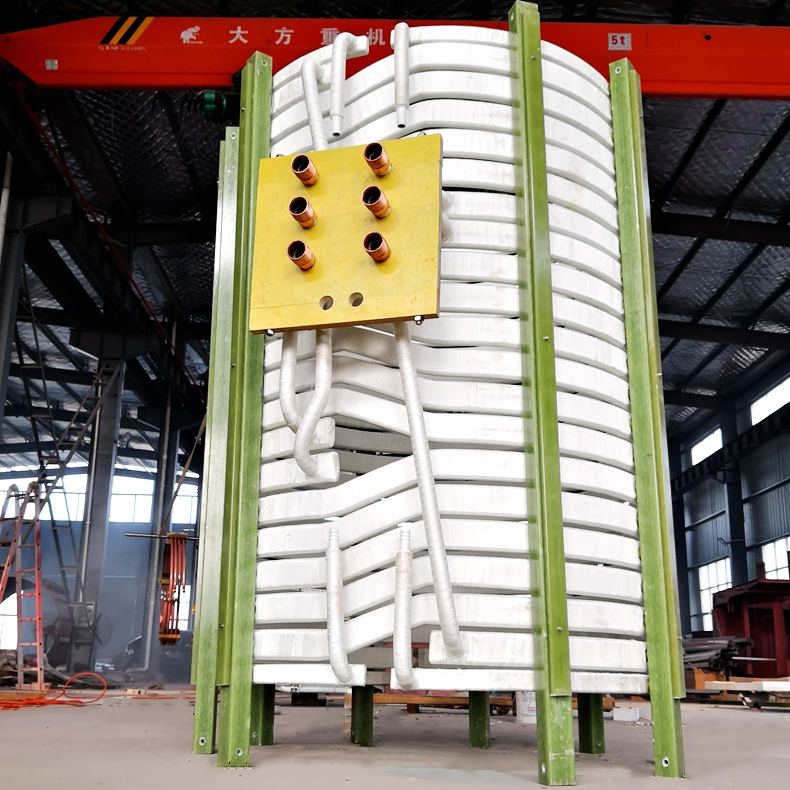 下图是鼎丰电炉公司为北京华创科技设计生产的同轴电极真空熔炼炉感应圈:该感应圈采用计算机进行优化设计后,确定其基本参数,如匝数、铜管规格、高度与直径的比率等,*程度上提高了电效率。真空感应线圈采用国标优质无氧电解铜管绕制,感应圈整体经防锈钝化处理,防止线圈在使用过程中氧化堵塞,感应圈出厂前经过严格的真空氦质谱检漏以及耐压和通水三重检验,彻底杜绝了感应圈渗漏现象,保证线圈质量。感应圈铜管每匝都经过氩胺薄膜、云母带、玻纤带、经真空浸漆四重绝缘处理,,有效防止线圈打火,电流泄漏等现象。同时可有效防止炉内高温熔融金属短时泄漏对线圈造成的烧损。铜螺丝用F4绝缘套管和F4绝缘垫与胶木柱隔开,并在胶木柱的内侧敷贴F4板,采用同轴电极与感应圈相接的结构,采用同轴电极可以节能,更可使真空炉体与同轴电极连接部位密封结构简化,能够提高密封的可靠性、安全性与真空度。该产品现已广泛应用于真空有色金属、稀土材料的提纯设备上。