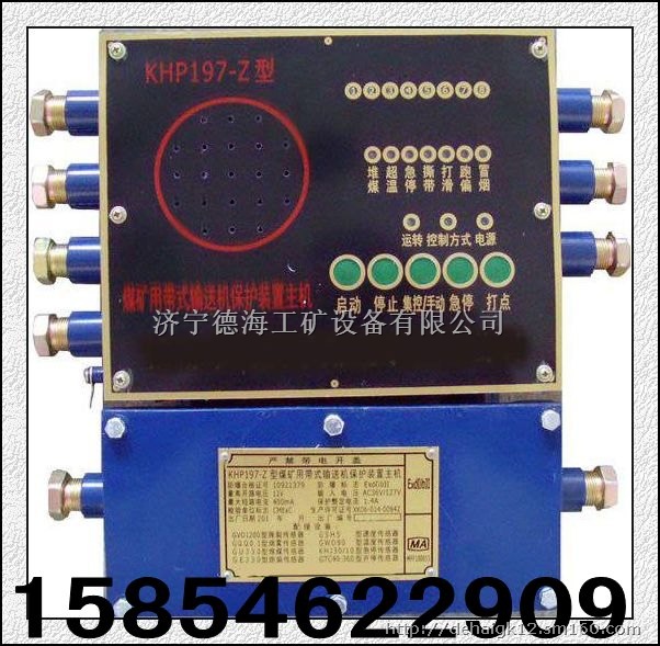产品用途:KHP197-Z煤矿用带式输送机保护装置主机(以下简称主机)是根据国家煤矿安全规程和关于完善井下皮带运输机保护的有关文件的要求而进行设计的,在进行了大量的井下实地调查及试验后,对现有的皮带机综合保护器进行了优化和改进;同时听取了大量的用户反馈意见,使本装置的先进性、可靠性、操作方便性、节能等与同类产品相比较都有了较大程度的提高。本装置的特点为适用于具有易爆性气体和煤尘的矿井中,用来对带式输送机进行综合保护及控制。其特点: