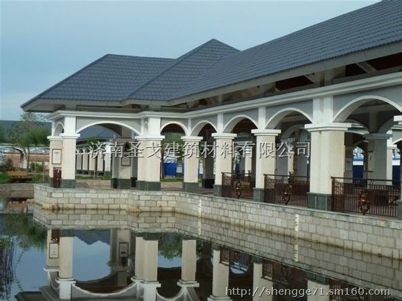 济南圣戈建筑材料有限公司专利产品——金彩石金属瓦,已广泛应用于工业与民用建筑坡屋面防水屋顶。这种产品色彩鲜艳,成为近年来都市建筑中一道亮丽的风景线。