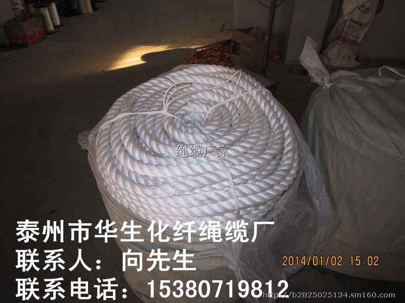 泰州市华生化纤绳缆厂是专业生产三股绳、八股绳、十二股绳 多层多股编织绳、尼龙单丝六股复合绳、缆绳、系泊缆绳尾、军用伪装网、各种帐篷等产品的生产厂家。设备先进,技术力量雄厚,质量可靠,款式齐全,交货期快。可根据客户要求来样定做。欢迎新老客户来电来函洽谈