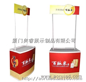 此促销台为新开发产品,桌面和架体全部为铝合金材质,外表美观高档,承重40公斤,画面可随意更换,收起来等同于易拉宝的大小。携带方便,安装简单,承载力重。适用于各种展销会、大型卖场、商场、超市、房地产门市、产品促销等活动,结构牢固,成本低,耐用。拆装方便,便于携带,适用于各种展销会、大型卖场、商场、超市、房地产门市、产品促销等活动,结构牢固,产品广告展示比较大气,高档次。