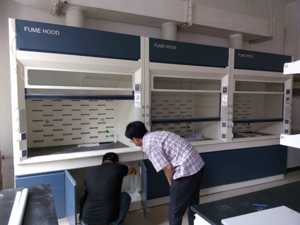 长春06-2钢木通风柜规格<br/>名称<br/>规格<br/>备注<br/>通风柜<br/>1200*850*2350<br/>所示规格为通用规格<br/>客户如有特殊要求,可以订做<br/>1500*850*2350<br/>1800*850*2350<br/>……<br/>1.长春06-2钢木通风柜整体为钢木结构。<br/>2长春06-2钢木通风柜.通风柜技术规范及材质说明:<br/>框架材料为上海宝钢产优质冷轧钢板,厚度≥1.2mm。金属表面经环氧树脂喷涂,高温固化处理不存在裸露金属面(含切割面、螺孔),喷塑厚度及质量要求达到国家规定标准,附着力好,外观细腻。整体具有较强的耐蚀性。<br/>(1)长春06-2钢木通风柜内衬板、导流板:采用厚度6mm厚抗倍特耐腐蚀板制作,分层(上、中、下),并使柜内无排风死角,各种比重气体均能顺利排出柜外,三块导流板使处于不同高度空间有害气体以控制浓度小于0。5ML/M3的性能指标分别从不同段区排出,拉门开启10cm时操作口表面风速0.3-0.5M/S的速度将通风柜中气体排出,确保无任何残留气体存在。排风量1000-1600M3/h,噪音低。<br/>(2)长春06-2钢木通风柜顶板:电源采用专业设计的10A或16A三极多功能插座,具有防尘、防酸碱、防水设计;并配置漏电保护开关,有效保证人员及设备安全。<br/>(3)长春06-2钢木通风柜:隐藏式光源,在顶板上配置40W防爆型日光灯,保证工作面不低450LUX的亮度标准,不与柜内气体接触,易更换。<br/>(4)长春06-2钢木通风柜拉门:双悬式玻璃门,材质为铝合金框架镶嵌5mm钢化玻璃,上下开启,操作方便灵活,拉门底部应有橡胶减震垫,以减少开关时的冲击。无段式平衡法码,拉门时上下自如,可任意位置停留。<br/>(5)长春06-2钢木通风柜传动:双悬玻璃门通过导轨、配重滑轮组、钢索、配重等同步传动,上下开启灵活方便,噪音低。<br/>(6)长春06-2钢木通风柜台面部分:采用12.7mm实芯理化板台面。<br/>(7)长春06-2钢木通风柜箱体:门板、柜体板材,采用18mmE1级防潮高压中密度三聚氢胺板。<br/>( 8 )长春06-2钢木通风柜 风柜控制(LED液晶显示): A采用大屏幕LED液晶示控制屏,触摸式开关,):<br/>时钟:用于显示24小时实时时间。<br/>风机定时开机:可设定定时开机时间,如早上8点,以便于自动化管理。<br/>风机定时关机:可是设定定时关机时间,下班后自动关闭,无需人工看管。自动化控制。<br/>菜单式界面;易于操作。<br/>大屏幕LED液晶显示,蓝色背光,科技时尚感强,各项参数显示明了。。<br/>( 9 ) 长春06-2钢木通风柜化验小水杯:采用6mm厚PP材料一体成型,耐酸碱。<br/>( 10 ) 长春06-2钢木通风柜化验水龙头:90°单头额颈、陶瓷阀芯,化验龙头;<br/>( 11 )长春06-2钢木通风柜电源控制装置:电源、插座、漏电、过载、欠相、逆转等故障保护;<br/>( 12 )长春06-2钢木通风柜 风机控制:可控性强!*可控制380v, 5.5KW三相交流异步电动机的启动与停止。<br/>( 13 )长春06-2钢木通风柜 插座:采用两联六孔实验式专用万能插座,可适用各种实验室仪器插头;