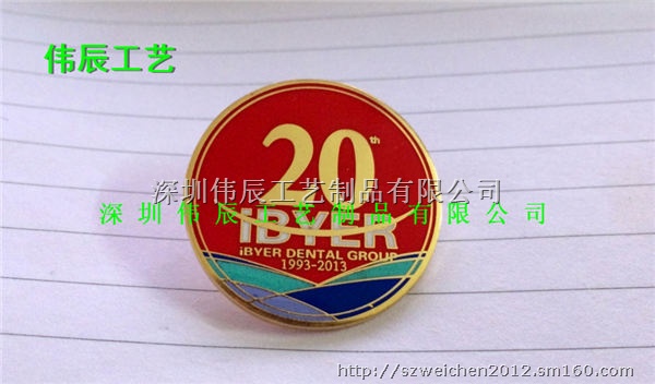 深圳市伟辰有限公司是一家专业生产各类金属工艺制品的内资企业,拥有先进设备及专业技术,公司正在不断地创新产品以满足客户的不同需求。主要产品有:锌合金徽章、冲压徽章、蚀刻徽章、印刷滴胶徽章、马口铁胸章、仿珐琅徽章、亚克力徽章、广告胸章、帽徽、校徽、肩章奖章、工号牌、纪念币、钥匙扣、折叠式挂包扣、狗牌、铝灯罩、领带夹、袖扣、冰箱贴、杯垫、手机链、发夹、书签等高档工艺制品。
