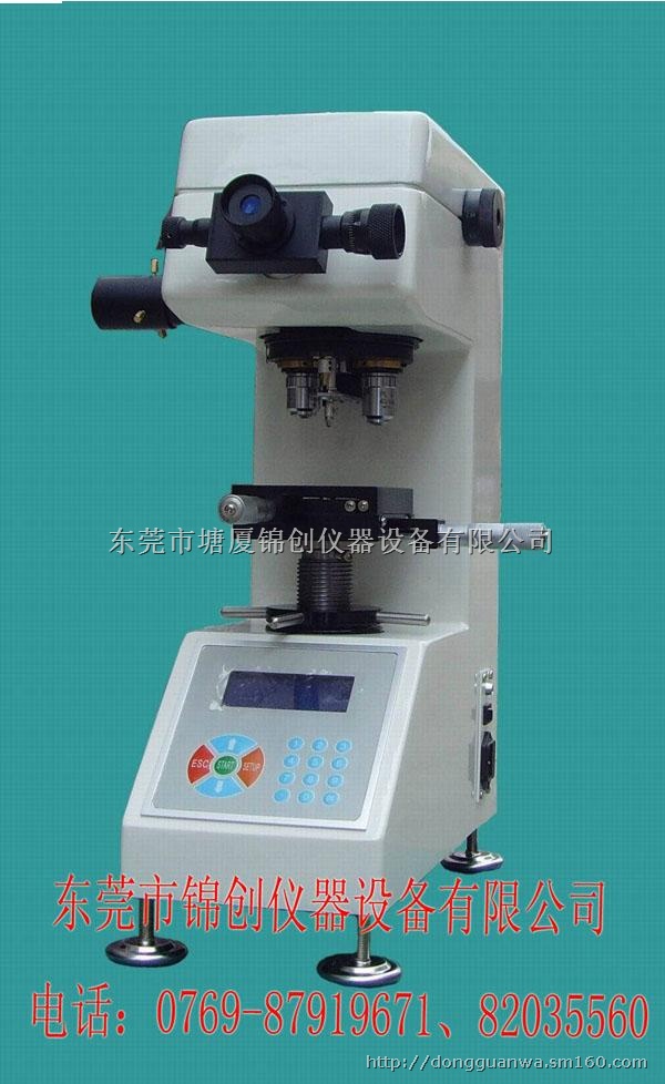 数显维氏硬度计 数显显微维氏硬度计HV-1000 主要特点: 1. 操作简单,直接输入压痕对角线长度, 仪器自动计算及显示硬度值。 2. 强大的硬度自动换算功能,可以选择(HRA、HRB、HRC、HR15N、HR30N、HR45N、HB)等七种硬度标尺,避免查表的麻烦。 3. 加大液晶屏显示,数据显示更清楚明白。 4. 人性化、菜单式操作面板,设置快捷方便。 5. 双光通道可以同时使用。 6. 智能休眠功能,延长光学、电子元件使用年限。 7. 国内首创加长焦距物镜,方便聚焦,可有效保护物镜不被工件碰伤。 应用范围: a. 黑色金属、有色金属、表面涂层、层压金属、IC薄片; b. 陶瓷、玻璃、玛瑙、宝石、薄塑料、金属薄片等; c. 电镀层、热处理、碳化层、脱碳层和淬火硬化层的深度及梯度的硬度测试。 技术参数: 维氏标尺 HV0.01、HV0.025、HV0.05、HV0.1、HV0.2、HV0.3、HV0.5、 HV1 试验力 10 25 50 100 200 300 500 1000(gf) 0.098 0.245 0.49 0.98 1.96 2.94 4.9 9.8(N) 物镜 10×(观察) 40×(测量) 试验力选择 通过试验力变换手轮选择,仪器自动识别。 测试模式 HV / HK 分辨率 0.25um 加载控制 自动(加载/保荷/卸载) 保荷时间 5~60S 硬度值 人工测量,仪器自动计算,显示结果。 XY平台 尺寸: 100×100mm 行程: 25×25mm 试件最大高度 80mm 光源 DC6V15W 光源亮度连续可调 电源 AC220V / 50Hz 外形尺寸 300×450×530(mm) 重量 25Kg