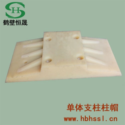 柱鞋厂家 天津市单体支柱柱鞋 郑州市尼龙柱鞋 :鹤壁恒晟塑料制品有限公司(可根据客户需要生产不同规格的单体支柱柱鞋、柱帽、矿用电缆挂钩、地辊、背板、垫板、衬托、衬套、衬轮、衬板、尼龙棒、滑块、树木支撑架)安标证号:EE201488本实用新型涉及矿井支护类产品,用于软底回采工作面,尤其是特软底板条件的单体支柱柱鞋。(单体支柱柱鞋,尼龙柱鞋,塑料柱靴)底面设计为向上拱起的弧形面,只设一只回收耳,加强筋增为八条。结构合理,受力状态好;稳定性好,不滑移、不侧斜,能有效地减少支柱钻底量,相同条件下约为平底柱鞋钻底量的二分之一至三分之一,能保证支柱的初撑力和迎山力,提高支护,并有重量轻,强度高,节省材料等特点。