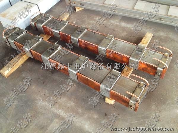 江苏鼎丰电炉设备有限公司配套生产的ABP(埃博普)五吨真空炉磁轭:采用新日铁0.23-80优质高导磁性冷轧取向硅钢片,为确保铁芯叠装质量的稳定,鼎丰电炉硅钢柱安装制作项目部制作专用定位组焊和硅钢片叠装平台,采用这种生产工艺压紧的效果好、漏磁少。硅钢柱紧贴感应圈,有效改善磁通走向,消除铁芯在接缝处的局部磁通饱和现象,降低了铁芯的空载损耗、空载电流,充分利用硅钢片的导磁面积增强磁导通能力,减少中频感应熔炼炉炉体局部发热的可能性。磁轭封面夹板采用316L无磁不锈钢板与硅钢片接触部用高档金云母板隔开,外侧用T2纯铜板固定,在铜板上焊装有特殊设计的铜质散热管,起到*磁场并减少磁轭的发热量,保证了磁轭处于常温状态,有效的把磁力线聚集到熔池中,防止炉壳发热,提高了系统效率,在性能稳定的同时也给线圈以可靠的支撑,提高了炉体整体强度。鼎丰电炉生产的中频炉磁轭(硅钢柱)在制作及出厂前,严把质量关,为确保硅钢柱制作质量的过程控制,在叠装前对硅钢片各项参数进行了检查,同时每一张硅钢片在叠装前都要经过外观检查,通水槽冷却铜管均通过耐压和通水实验,外层喷涂THERMAL S.C耐高温防电弧绝缘漆,有效的阻止了硅钢片的分切面通磁、生锈保证了磁轭硅钢片的质量。