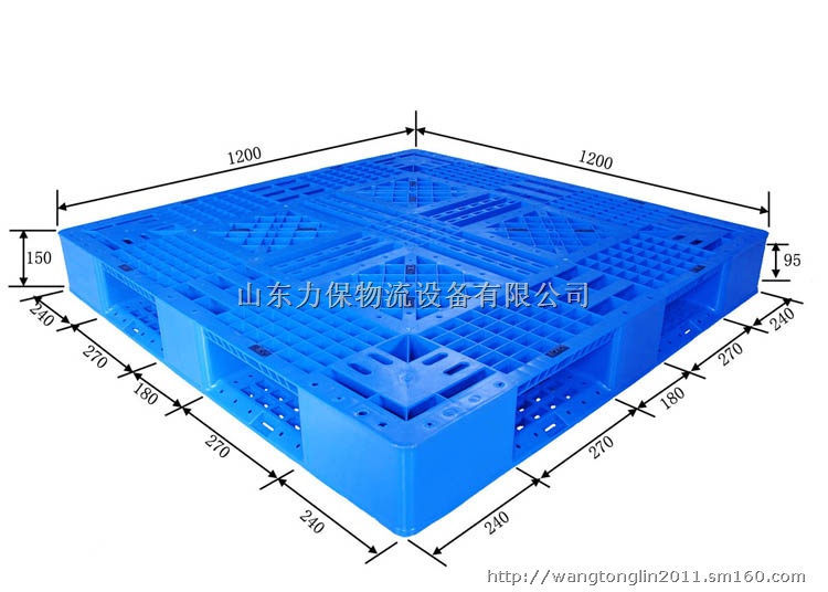 一、塑料托盘的尺寸、结构,通常按照尺寸有标准托盘1111、1210,也有非标准的如1010、1311、1212、1412等尺寸。结构分为单面托盘、双面托盘,按照结构的形状分为田字底、川字底、双面、七脚、九脚等等。