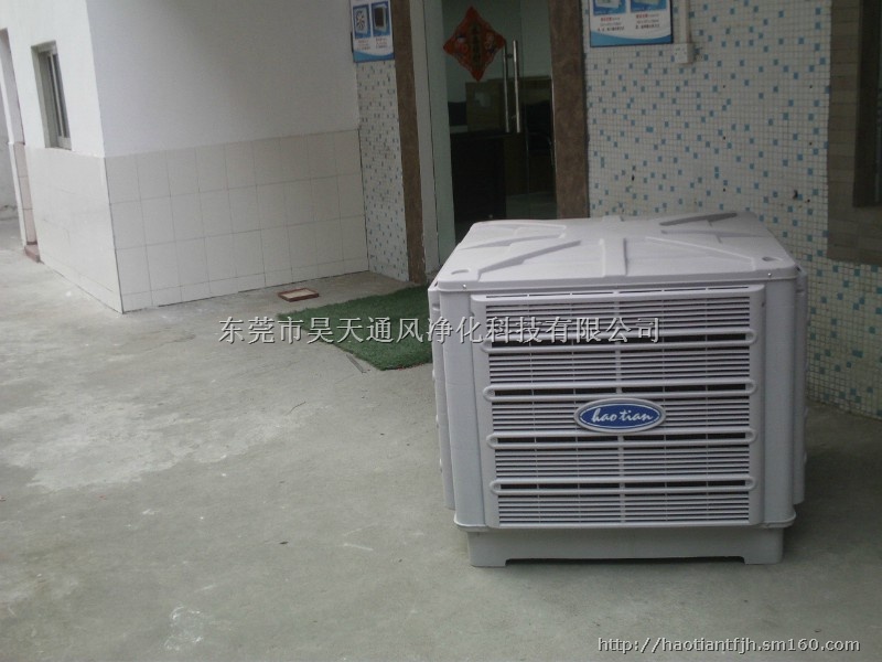 [haotian]环保空调,又称蒸发冷风机,是一种集降温、换气、防尘、除味于一身的蒸发式降温换气机组。环保 空调除了可以让企业车间、公共场所、商业娱乐场合带来新鲜空气和降低温度之外,还有一个重要特点- --节能、环保!它是一款全新无压缩机、 无冷媒、无铜管的环保产品,主要部件核心-----蒸发式湿帘 多层波纹纤维叠合物)及1.1KW的主电机/是传统中央空调耗电8/1,能为各行业更实在的省电。 环保空调原理  蒸发式降温换气机组原理:  根据“水蒸发吸收热量,蒸发面积 影响蒸发效率”这一自然物理现象,使空气经过实际换热面积为表面多倍的蒸发湿帘,将大量的热量吸收 ,从而达到降温的目的。 “多层波纹纤维叠合物”湿帘特性    核心部件是直接蒸发式湿帘—“多层波纹纤维叠合物”湿帘是瑞典的专利发明,它是经过特殊的“多层波 纹纤维叠合物”,其特点是: 有良好的吸水性能和通风性能, 质地结实,耐水浸泡而不变形;耐腐蚀, 正常使用寿命可超过5年。“昊天”使用的蒸发湿帘,其换热面积为表面面积的100倍,因而降温效果显著. 蒸发式降温换气机组换气原理  蒸发式降温换气机组适用于敞开式及半开敞式 环境,能够直接输送自然风及输送降温后的凉风。室外新鲜空气经科瑞莱蒸发式降温换气机组过滤、降温 后向室内源源不断的大量输送,将室内带有异味、粉尘和混浊闷热的空气排出室外,同时兼顾换气、降温 及增加空气含氧量等多种效果,特别适用于高温及人群密集场所。 厂房降温系统 蒸发式降温换气机组 节能环保空调工程 负压式湿帘 保空 调售后服务 工业冷水机 水帘风机 水冷空调 湿帘空调 专门针对已经在生产及服务的企业,对车间和公共场所网吧养殖场,企业通风降温设备进行调 整,同时达到节能、通风换气、降温及防尘等效果。把环境要求达到最佳效果; (360度蒸发式降温换气机组策划全面代理) 本工厂主要以批发为主,厂家直销。从考察现场,专业图纸设计,机组设备进场安装,售 后跟踪到维修保养一站式全面服务。