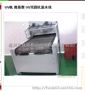 产品介绍本 结构--1,输送带 2,UV光源 3,送抽风系统 4,IR均化流平烘道 5,机架 6,控制系统输送带宽一般0.9米,不锈钢材质,网带结构或棍棒结构,UV光源一般5盏,分上左右前后,使产品每个面都很好的固化,可根据固化面设计。送抽风能很好的控制UV区温度,使产品始终在需要的温度下固化,不变形不焦化,而且有无尘过滤功能,使产品固化更干净达到高要求-----均化流平同样是在无尘的环境下,温度可调,温度均匀,UV光油流平好。机架组装结构:便于拆装,设备外壳喷塑处理美观大方。控制系统PID温控,自动恒温,热风循环,净风自控温控,输送可调,变频控制,采用进口及国产名牌电器元件性能参数UV灯功率的选择。 ⑴UV灯的功率即UV灯光的辐射能量,也称穿透力。首先,它一定要满足UV油墨(光油)吸收的光谱波长及功率密度的要求。若UV灯的功率不够,即使光照时间再长,过UV固化装置的次数再多,产品也达不到完全固化。相反,还会使UV油墨(光油)表层老化、封闭、变脆等,同时油墨(光油)的附着力也不好,会使叠印的层间结合力差。因为低功率的UV灯光不能穿透墨层底部,使底部未固化或固化不充分。 ⑵UV灯功率一般要满足60~120W/cm的要求,但功率越大热量也会越大,因此要根据固化物和固化速度不同来选择功率。 ⑶UV灯的最大寿命一般为800— 1000小时,达到后即应更换,因为到此时段的UV灯所发射的紫外光线的强度变弱,会影响固化效果。同时建议在使用期内根据生产环境(空气的含尘量)不同,在适当时间用无水乙醇清洁灯管表面及反射罩表面的反射板,再将UV灯管转90°。这样有利于UV射线全部有效辐射到UV油墨或光油上,保证一定的穿透力。 ⒉ 反射罩 反射罩的类型有聚焦型、非聚焦型和多面反射型。一般采用的是聚焦型。这种反射罩的结构特点是反射的UV光线能量集中,光固化的效率高,有利于厚墨层的油墨固化,可使油墨的深层完全固化。在这方面应注意的是反射罩的选材和形状。其他说明注意事项 ⒈ 接地线是否接地良好。 ⒉ 在拆换紫外灯时,不要用手触摸灯管,以防在紫外灯上造成痣,影响发光效率,必须佩戴干净手套进行安装。 ⒊ 关闭紫外灯管后马上重新启动,紫外灯不亮是正常现象,待紫外灯冷却后方可重新点亮。 ⒋ 风机不正常时,切勿使用,以免烧毁紫外灯。 ⒌ 为防止紫外灯过早老化,关灯后不能马上切断总掣电源,须待机器自动关机后再切断总电源。 ⒍当机器发生严重故障时,请及时通知厂家或经销商,切勿自行打开机箱。 ⒎ 当传动辊在转动过程中有轻微的跳动时,请及时将传动辊两端的紧密螺丝旋紧。交易说明电 话:86 0577 85103001移动电话: 13626775853传 真:86 0577 85103001地 址:中国 浙江 温州市瓯海区
