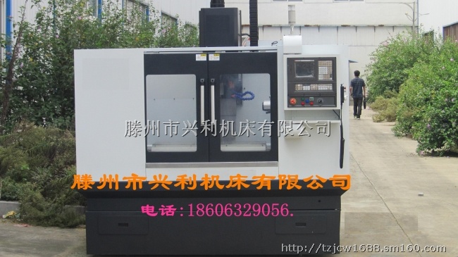 滕州兴利机床生产的XK713数控铣床标准配置状态时,进给轴为X、Y、Z三坐标三联动控制。能够实现对各种盘类、板类、壳体、凸轮、模具等复杂零件在一次装夹中完成钻、铣、镗、扩、铰等多种工序加工。配上第四轴数控分度头或者回转工作台,可以加工回转体上的螺旋槽等更复杂零件的加工。