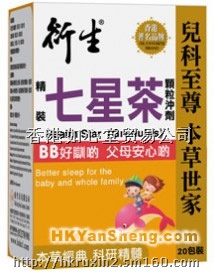 产品简介 「衍生七星茶」,以七味上等中药加以精配优化而制成,对于宝宝夜睡不宁,易醒易哭,具有清热宁神、镇惊安眠的作用。