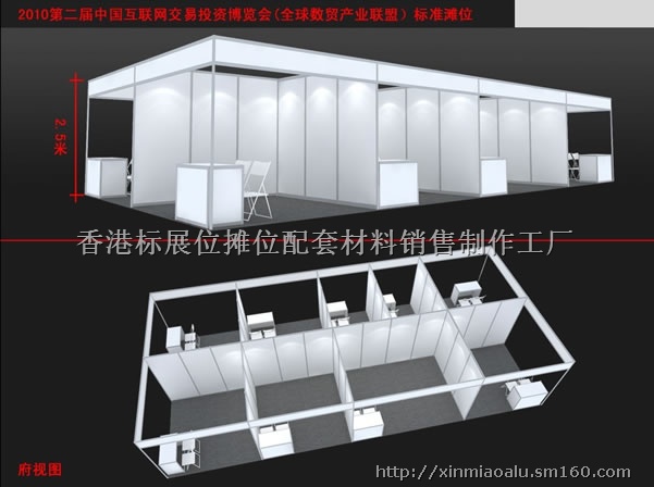 览会用3×3米标准摊位材料,有单间、5连展位、10连展位等,尺寸可按照客户要求设计制