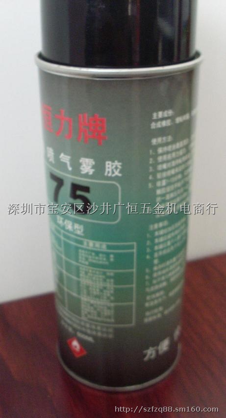 恒力牌75喷胶是不干型喷胶, 胶性强度适中,胶性持久,可反复粘贴。特别适用于需要重复定位,粘贴的场合。如:丝印定位、模型定位、印刷排版等。