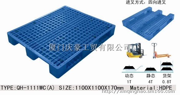 ·厦门庆豪工贸有限公司专业生产吹塑托盘、塑料托盘(地台板、塑料栈板、塑料垫板、卡板)塑料周转箱、周转筐、仓储笼、仓库笼、铁笼、置物架、梯具等物流仓储产品。