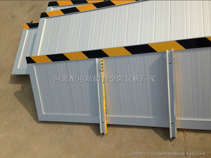 采用新型铝合金材质挡鼠板替代老式挡鼠板材,实用、结实、耐用、使用时间长。由挡鼠板主板面和卡槽够成,外观可见部分为铝合金定制,且贴有黄黑色的反光警示贴。