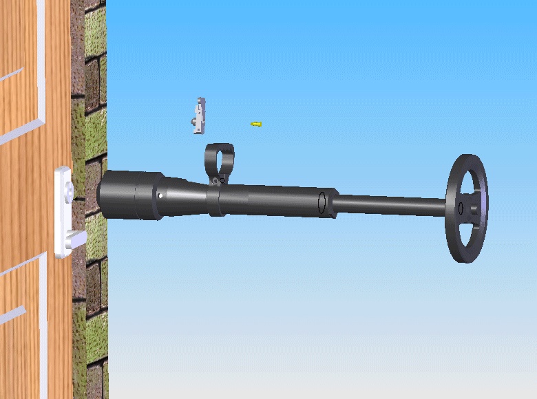 (专利号:200820129764.0)在公安特警反恐行动时,突击队员经常需要迅速撞开房门,冲入室内,不给疑犯反应时间,才有可能达到有效压制疑犯、保护人质的目的。然而,使用什么工具和技术才能快速有效的冲进去是非常关键的问题,在严重性和迫切性要求较低的破门任务中,撞门器是突击队员破门专用工具,利用自身重量来增加冲力,由于受人体力量所限,一次不能破门成功时,需进行几次撞击。