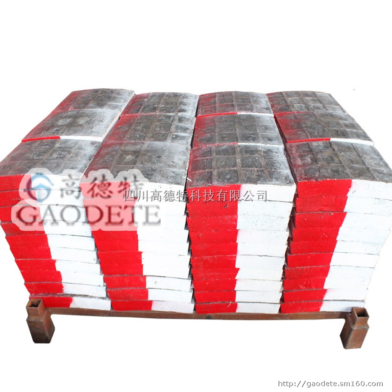 安装在磨机筒体内表面以保护筒体不被磨损,并影响研磨介质在筒体内运动形态的部件。衬板的形状、材质、厚度取决于磨机类型和结构、被磨物料的性质(如硬度、粒度和成分)以及操作条件(如磨机转速、尺寸、研磨介质类型、尺寸、材质和产品粒度)等因素。衬板虽是磨机的附属部件,但改进其形状有利于改进研磨介质的运动形态,从而可提高磨矿效果;改进其材质可以大大节省消耗,且可提高磨机作业率,因此衬板的形状和材质是磨矿技术的重要研究内容之一。
