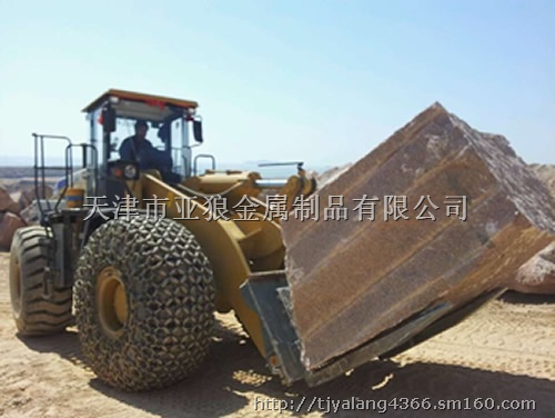 【产品作用】: 我公司研发生产的轮胎保护链解决了装载机,采矿机 ,重型汽车等大型采矿设备轮胎寿命短,效率低的问题,特别是在矿区,采石场大负荷作业的设备轮胎寿命更短的问题。使用我公司生产的轮胎保护链,可以显著的提高采矿设备轮胎的工作效率,延长轮胎的使用寿命,大大的降低更换轮胎的高额费用,给广大用户带来直接的经济效益,受到了广大用户的欢迎。