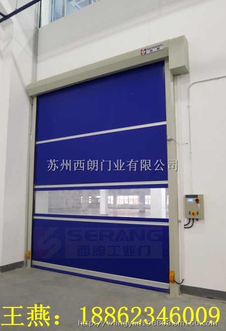门布材质:一般以PVC或PVDF膜材作为帘布,特别是PVDF膜材抗老化性能更好,不易退色而且有自洁功能,做快速卷门非常适合。产地以德国产或法国产的为首选。厚度0.8mm-2.0mm。颜色有橙色,黄色,蓝色,银色,透明网格,黑色等,以橙色为首选,原因是橙色非常醒目,有警告作用,还有一定的防虫功能。
